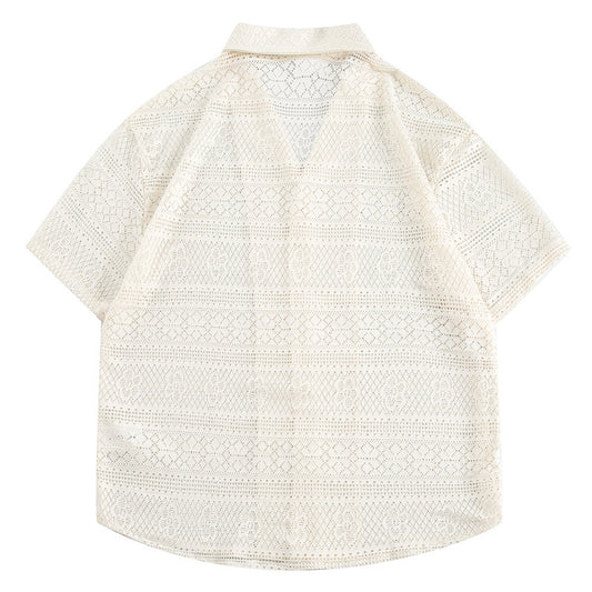 New Chinese Style Hollow Pattern Cuban Collar Short Sleeve